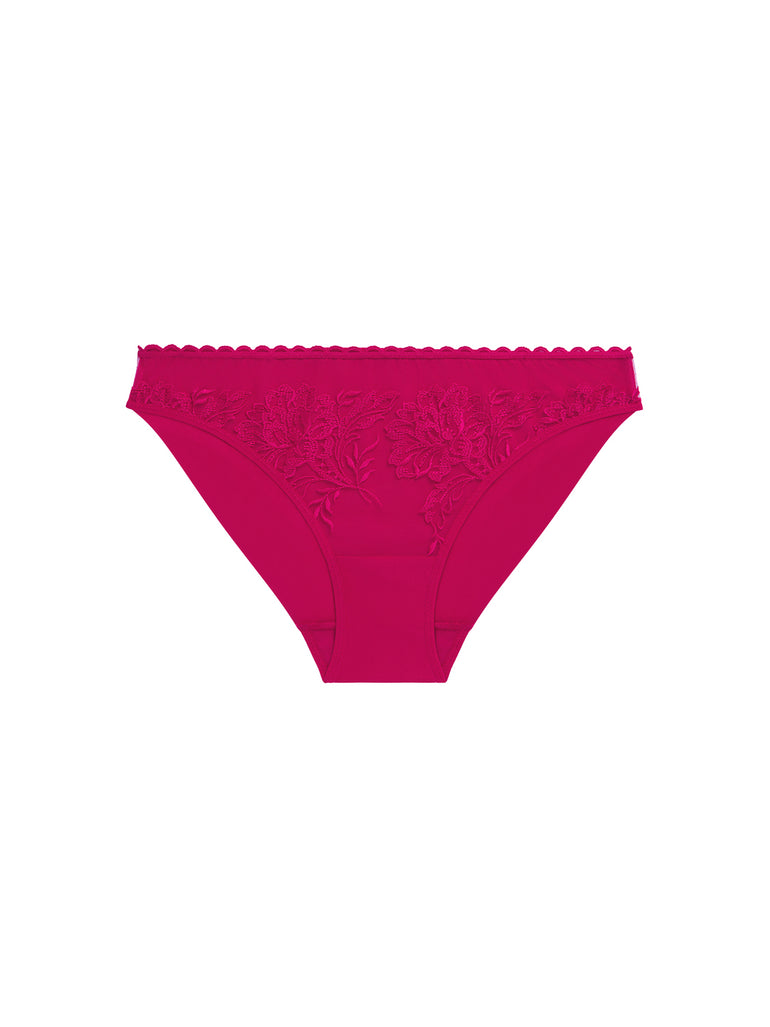 Complete your look with the Romance Bikini, crafted in soft stretch tulle and adorned with floral embroidery. Unapologetically romantic, this full-coverage style features scalloped trim and a decorative center bow. Limited edition.
