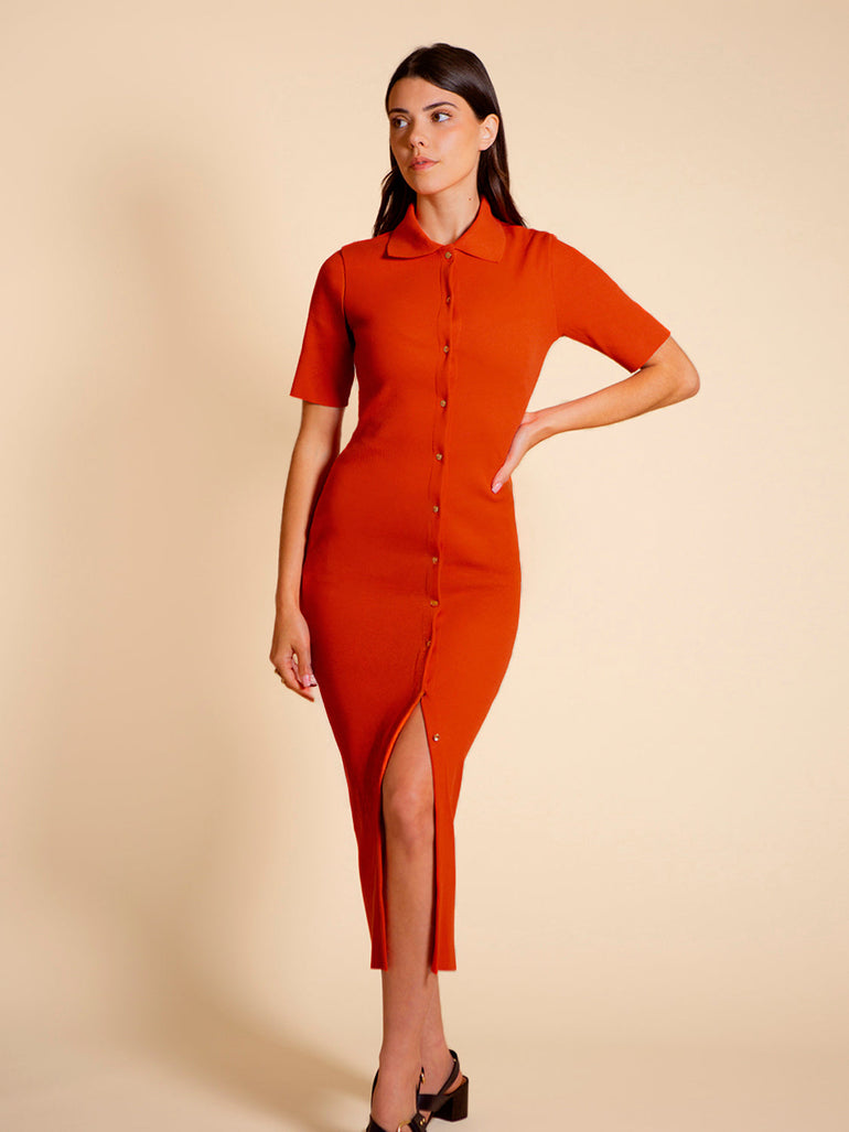 The Garance Dress is a closet staple with its versatility and effortless style. This dress features a soft ribbed knit fabric for ultimate comfort and its flattering silhouette that hugs the body.