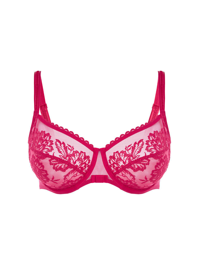 Designed for the romantic at heart, the Romance Full Cup bra is both supportive and stunning. Crafted in sheer tulle with floral embroidery, this unlined bra features 3-part cups with extra tulle lining for a beautiful shape. Adorned with a decorative bow and exquisite pleated straps that are fully adjustable. Limited edition.