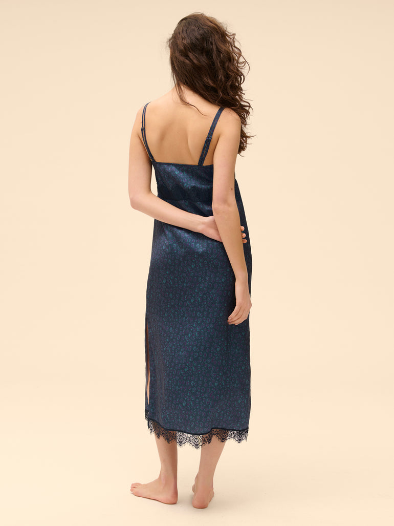 Satin Secrets Long Nightdress - Feline Blue