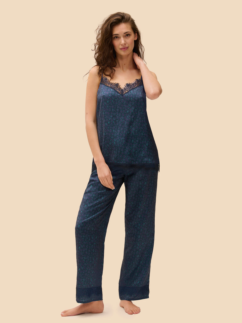 You might just have a new favorite sleep set on your hands. This divinely soft and dreamy night pant is made with premium satin that’s so lightweight, it feels like nothing at all. Designed with a relaxed, flattering cut and eyelash lace detailing that’s as seductive as it is effortless.