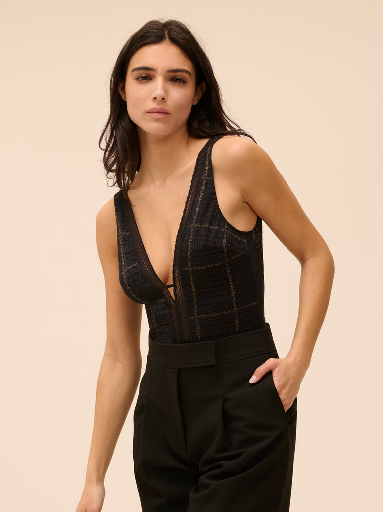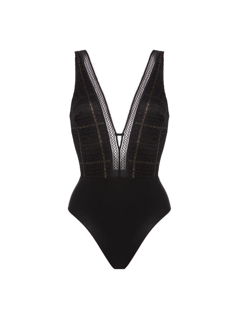 A whisper of lace, a plunge into romance. The Desiree Bodysuit is unforgettably chic, with a wireless triangle silhouette and an ultra-plunging neckline. Crafted in a sensual knit with Leavers lace details, a bikini brief-style bottom with cotton gusset and bottom closure for comfort. Limited edition