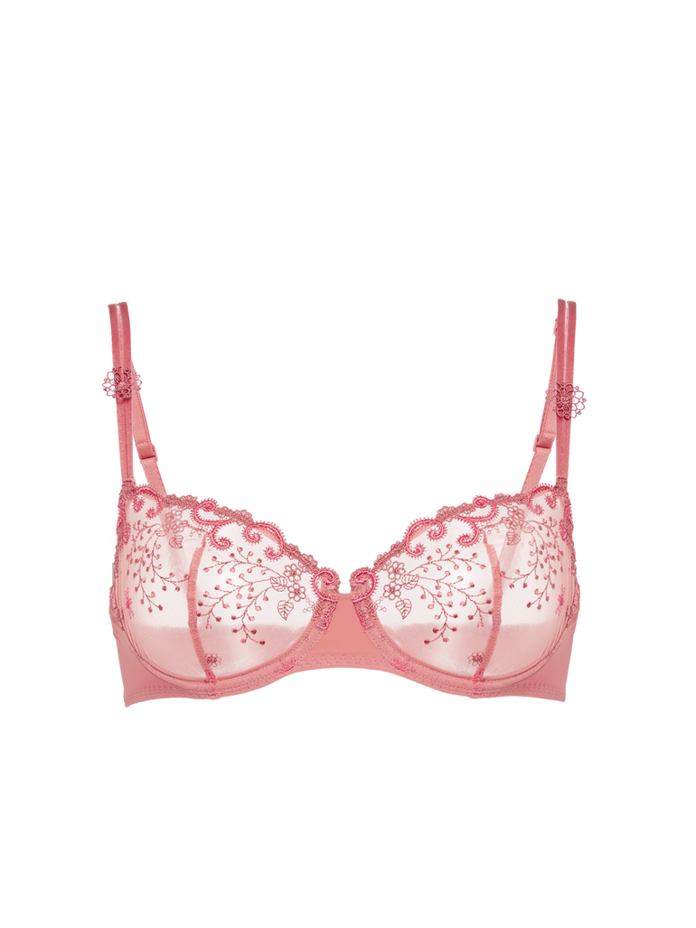 Feel feminine in this sheer demi bra decorated with ultra-sensual embroidery. Seductive, yet so much more than a seduction bra, this exquisite demi offers fabulous French style and a fit you can feel confident in, up to F cup.