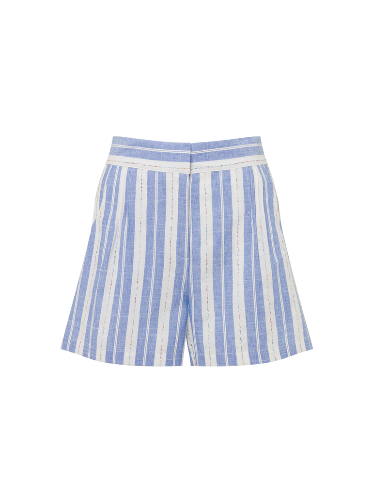 The Josephine Short has the perfect blend of tailored structure and relaxed comfort. It features front pleats, and zipper with tab waistband. What makes it extra special? A subtle, but fun pop of colorful threading in the striped print. Pair it with the Josephine Long Sleeve Shirt.