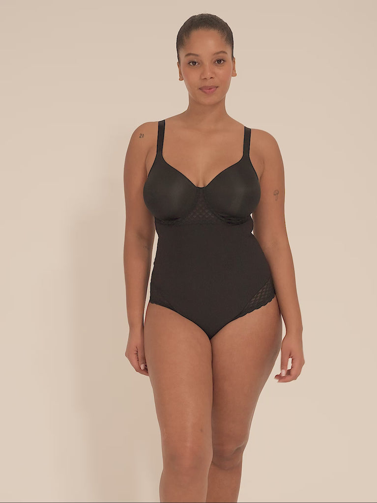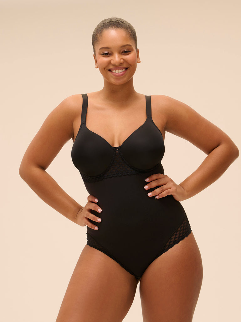 Meet your wardrobe’s best-kept secret. The Subtile Underwire Bodysuit smooths and defines your waist, tummy, core, and back for a beautifully contoured silhouette. Featuring supportive minimizer cups to shape the bust, seamless lace accents, fully adjustable multi-position straps, and a cotton gusset with snap closure.
