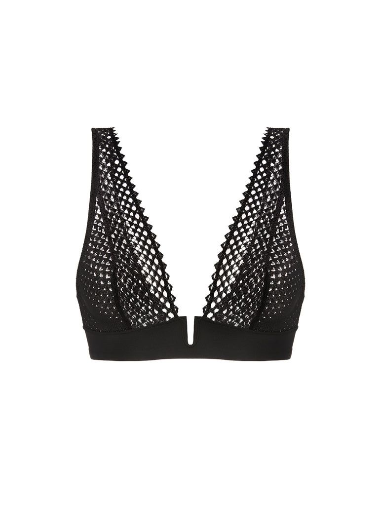 Channel your inner Parisian with this graphic lace bralette. The Cassandre Bralette features a plunge triangle silhouette with striking scalloped edges. Soft lace cups and a wide elastic underband offer natural support, while the deep V backline adds a touch of unexpected drama. Limited edition.