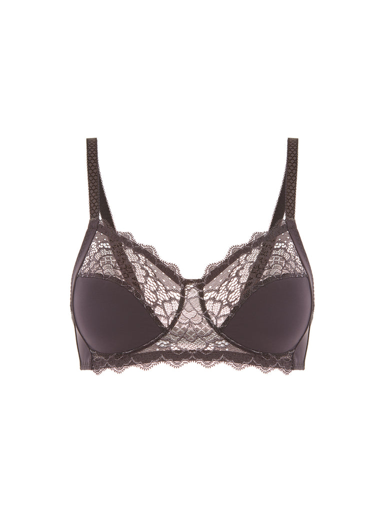Meet your new favorite wireless bra. This bra offers divine comfort, coverage and chic oh-so-French style. Feminine scalloped lace reinforced with tulle for support is as soft as a whisper against the skin. Cups are stylishly designed with Jacquard fabric lined with luxuriously soft cotton that supports and shapes the bust.